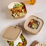 32oz square kraft food container. Thai food, fried chicken and more. This square food container is perfect for street food. Made from sustainably-sourced kraft board with a water-based lining. Brown kraft with green Vegware messaging. Award-winning quality by Vegware, made from plants. Designed for industrial composting, made from recyclable materials.